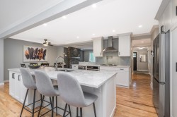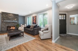 A flawless, fully renovated White Rock rancher. Located on a peaceful street just 30 seconds from Peace Arch Elementary. This stunning 3-bedroom, 2-bathroom home has been transformed with meticulous attention to detail. Original hardwood floors. Open-concept layout flooded with natural light. Stunning chef’s kitchen: dramatic quartz countertops, shimmering glass backsplash, new premium appliances, professional gas range, wall-mounted pot filler, and a huge walk-in pantry with upright freezer and water line. Spa-like main bathroom with freestanding soaker tub + oversized custom glass shower. Ensuite with sleek floating cabinets, dual sinks, and luxurious shower. Huge wraparound deck overlooks a large private yard. New high efficiency furnace, on-demand hot water and EV charger. O/H SUN 2-4.