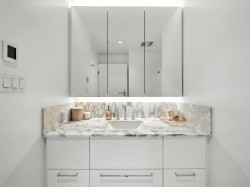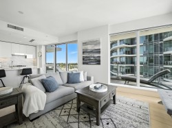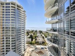 Ocean views with modern, urban living! Upscale condo offers bright, neutral colours and high-end luxuries. Spacious 1 bedroom PLUS den features, a stunning kitchen with marble counters, high end Miele appliances incl gas cooktop, panelled fridge and dishwasher, wall-oven and under-counter microwave. South-facing ocean and mountain views from the open concept living room. Large primary bedroom and gorgeous bathroom with tiled shower and deep soaker tub. It’s all about lifestyle with unmatched amenities including a heated indoor/outdoor lap pool, hot tub, fitness, steam room and sauna, billiards, table tennis, EV chargers and more. Walk to the pier, groceries, and all conveniences. “The ocean stirs the heart, inspires the imagination and brings eternal joy to the soul.” Robert Wyland.