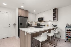 Welcome to BEACHBOROUGH in White Rock by Texor Homes! This great condition 1 Bedroom+DEN, 1 Bath unit is not fronting North Bluff Road and has a sunny West exposure! Relax on your sprawling 228sqft deck w/gas hookup! High-end stainless steel appliance package, designer finishes, laminate and tile flooring, BONUS HEATPUMP and much more! 1 secure underground parking, 1 Bike Storage, 1 Storage locker, pets and rentals allowed. Conveniently located in the middle of both Semiahmoo shopping center and Ocean Park Village.
