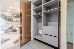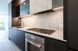 Monaco, White Rock's newest and most prestigious high rise. Ocean View home has it all from 18' gourmet kitchen featuring Thermador. Built in appliances from the fridge, cooktop, wine fridge, microwave, and oven. Cabinets feature pull outs everywhere. Master suite is large with massive closet space and more built ins. Ensuite is tiled to the ceiling, recessed mirrors, shelving, bidet, and heated floors. Flex space could be set up as a dining room or 3rd bedroom. Secondary bedroom is bright large and has loads of closet space. 2 Parking spaces (one with EV roughed in) storage locker. Air conditioned and ready to move in. There are 2 common social areas for entertaining a complete lounge area with kitchen and a 5th floor outdoor oasis including BBQ and Panoramic Views. Awesome gym as well.
