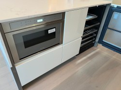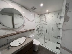 Sun-filled junior 2-bed, 2- Full bath condo with panoramic ocean views from your private balcony. Features EV-ready parking + 2 storage lockers . Modern kitchen boasts gas cooktop, wall oven & integrated fridge, plus island beverage center. Luxe ensuite with heated floors, Toto washlet toilet & walk-in shower. Just steps to White Rock Elementary, beaches & dining. Move-in ready luxury!