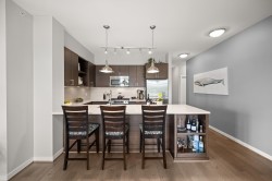 WINTER STREET! White Rock’s best-kept secret with an OCEAN VIEW! This top-floor unit is showered with an abundance of natural light from the large windows & high ceilings. Open living & dining area with access to a large south-facing balcony for enjoying the sunrise in the morning or sunset in the evening. 2 bedrooms, 2 full bathrooms PLUS a den outfitted with built-ins for the ultimate work from home space. Nicely appointed kitchen with stainless steel appliances including a gas stove & an island that accommodates 4 people. The generous primary bedroom has an ensuite with a separate shower plus a tub & a spacious walk-in closet. Live close to everything & want for nothing as you stroll to the beach, restaurants, shopping & more. Pets allowed with restrictions, non-smoking building.