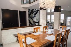Prepared to be amazed at the splendour this custom 5 bedroom, 2.5 bathroom home has to offer. No expense was spared in the construction of this magnificent home. Enjoy a peaceful drive just outside the south perimeter to your private 5 acre property with no front neighbours on a no through road. Spectacular main floor offers tile and hardwood floors throughout with 8' solid core doors. Grand entrance with custom stone features accent against the espresso cabinets in the gourmet kitchen. Massive quartz island with tons of prep space, newer Bosch appliances with stainless steel and glass tastefully incorporated. Grand great room with two walls of windows let in an abundance of natural light and custom built wood burning stove. Main floor office/den, powder room and mudroom, which leads to the oversized 40'x24' insulated garage with 8' OH doors. Take the open riser staircase to the upper level to find 5 bedrooms, down an incredible catwalk overlooking the dining and living spaces. Tranquil primary suite with WICC and 5 pc ensuite boasting heated tile floors, soaker tub and oversized shower. Outside features a massive composite deck with built in BBQ plus an outstanding 4 season bonus room.