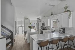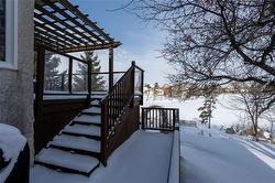 Showings start Thursday, Feb. 26 w/ Offers reviewed after 4:00 p.m. Monday, March 2....Lakefront living at it's finest offering beautiful sunset views and a serene setting that you will enjoy year-round. The fabulous home includes an open-concept kitchen, living and dining area that was beautifully renovated in 2019 and is perfect for day to day living or entertaining. The dream kitchen includes a spacious island and peninsula both with seating, an abundance of cabinetry w/ quartz countertops and an adorable kitchen nook w/ built-in bench seating. The lower level features a cozy family room w/ fireplace, ideal for relaxing evenings or movie nights. Upstairs you'll find three comfortable bedrooms including a spacious primary w/ an ensuite bath and wall to wall closet space. The basement is finished and includes a rec room, a fourth bedroom and lots of storage space. Outdoor/deck access off the living room or family room. Updates include shingles (2024), furnace (2026), basement windows & front door(2025) and much more! This is an exceptional opportunity to enjoy scenic views, thoughtful updates and lakefront living in a wonderful, family-friendly neighbourhood close to schools, parks and all amenities.