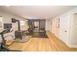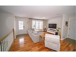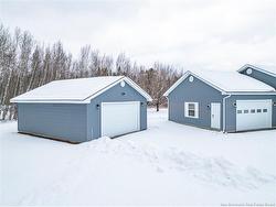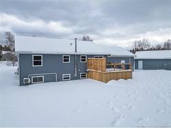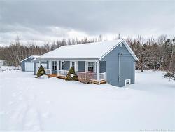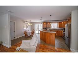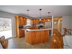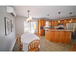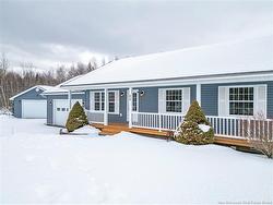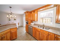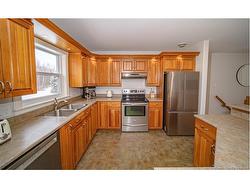 Set on a beautiful 1-acre lot in a family-friendly subdivision just minutes from Oromocto, this inviting home offers space, functionality, and standout features. Two double car garages provide exceptional storage and versatility, while the covered verandah adds charm and curb appeal. The main level features bright open-concept living, anchored by a well-designed kitchen with an abundance of cherry cabinets, generous counter space, a large island with extra storage, a raised breakfast bar ideal for casual meals and gatherings. Off dining area there are patio doors leading to a newer 16x16 large deck, an excellent outdoor entertaining space. The primary bedroom is privately located at the back of the home, with two additional bedrooms positioned at the front. A spacious main bathroom includes a linen closet and plenty of storage. The finished lower level expands the living space with a fourth bedroom, second full bathroom with laundry, storage room, and a very large rec room and family room complete with a wood stove for cozy evenings, plus walk-up access to the attached garage. This well-rounded property is ideal for family living, with quick closing available. Garage measurements: attached 22’ x 26’, detached 22’ x 30’.
