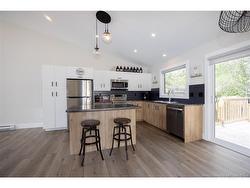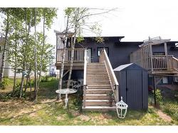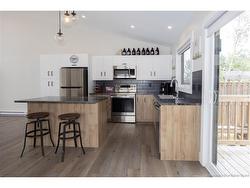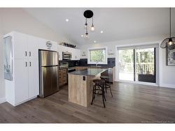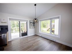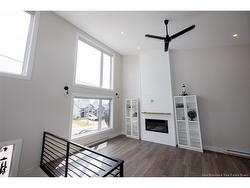 Stylish, modern, and move-in ready! This stunning end-unit townhome boasts 16-ft cathedral ceilings, large windows, and a sleek architectural design that maximizes light and space. The open-concept main floor features a bright kitchen with centre island, beautiful finishes, and all appliances included. The dining and living areas flow seamlessly, highlighted by a shiplap accent wall and built-in electric fireplace. A 2-pc bathroom and sliding door open to a 12x12 back deck and fully fenced yard, perfect for relaxing or entertaining. The fully finished split-level layout includes 3 spacious bedrooms downstairs, a 4-pc bathroom, laundry closet, and storage. Durable vinyl plank flooring runs throughout the home. Stay comfortable year-round with a heat pump providing cozy warmth in winter and cool relief in summer. Additional features include central vac, ECO HRV system, and extra outdoor space thanks to the end-unit location. Nestled in a quiet neighborhood just minutes from shops, the airport, and with easy access to beaches, this home offers the best of comfort, convenience, and East Coast living. A true gem in a prime location.