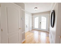 This delightful two-story residence with a walk-out basement and an insulated double garage is perfect for families. Conveniently situated within walking distance to schools, daycare centers, hospital, and shopping areas in a prestigious neighborhood, this home has it all. Beautiful hardwood flooring welcomes you at the entrance and continues throughout the first and second floors.The first floor features a spacious foyer, a functional laundry room with a half bath, and an impressive kitchen with freshly painted cabinets, a walk-in pantry, and a spacious island with seating. The stunning living room boasts elegant white French doors and a large window that fills the space with natural light. Adjacent is a well-positioned dining room, and a charming four-season sunroom with incredible views completes the main level.The fully finished basement includes another spacious bedroom connecting to a full bathroom, and a large family room with patio doors providing access to the beautiful backyard oasis.The home features three mini-splits for efficient cooling in the summer and heating in the winter.Extra features include a large storage area above the garage with easy access via a bi-fold ladder, a paved driveway, and professionally landscaped grounds. The pride of ownership is evident, and this home presents beautifully. It's a must-see to appreciate all its offerings.