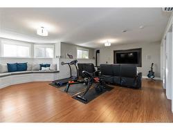 QUALITY CRAFTSMANSHIP..ONE OF KIND SEMI DETACHED HOME IN MONCTON NORTH LOADED WITH EXTRA FEATURES! THIS HOME IS NOT A TYPICAL SEMI DETACHED AND IS A MUST SEE!. Step into the spacious foyer to the open-concept main living area. The kitchen features a massive island with, birch-stained cabinets, a breakfast bar, and dining area with access to the FABULOUS 3+ SEASON SUNROOM — perfect for family gatherings and entertaining. The living room flows seamlessly from the kitchen, while hardwood floors extend through the master bedroom, second bedroom, and hallway. The 5-piece main bath offers a Jacuzzi tub and separate shower. The bright finished lower level offers exceptional additional living space, featuring two additional bedrooms, a full bathroom, and a laundry area. The spacious family room includes a pellet stove, built in speakers, window seating with under-storage, a custom built-in desk and cabinetry, elegant wainscoting and trim plus extra storage closets. Outdoor living is a highlight with a gorgeous sunroom, storage under sunroom and extra large lot adjacent to a treed greenbelt— a backyard like this is hard to find. ATTACHED OVERSIZED HEATED GARAGE is a dream featuring built in shelving, plenty of storage, man door, electric door openers and provides direct access from the garage to the lower level providing excellent in-law suite potential. This home is like no other and combines comfort, space, and lifestyle in one package. THIS IS A MUST SEE. CALL TODAY!