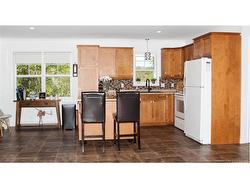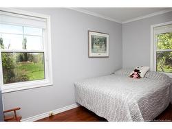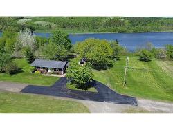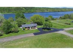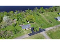 Beautiful, well-maintained home with stunning views of the St. John River! Ideal for nature lovers and those seeking one-level living. Enter through the spacious mudroom which has a laundry room off of it that is separate from the rest of the house, leading into an open-concept kitchen, dining, and living area filled with natural light. The kitchen features ample cupboard space, generous countertops, and a movable island. Hardwood floors flow through the bright living room. The main level includes a full bath and three spacious bedrooms, each with double closets for great storage. The fully finished basement offers a large open space perfect for a separate family room, along with two storage areas—one for wood, one for general use—and a separate half bath. The home is equipped with a wood/electric furnace and AC for year-round comfort, a 200-amp panel, and a generator hookup. Outside, enjoy a beautifully landscaped lawn and flowerbeds, plus a large composite deck with aluminum railings—perfect for summer BBQs. Also there is a 12 x 24 shed with underground power and a plug in for the generator which has a vent for the exhaust fumes. Convenient for when the power goes out, it is just as simple as starting the generator and the house is set to go! Located just 10 minutes from Woodstock and close to the Meductic boat launch, this riverfront gem is move-in ready!