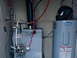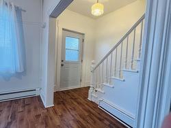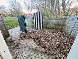 This cozy home Nestled in a serene park-like setting on a large 15,000 square foot lot, this 1100 square foot charming story and half offers a tranquil atmosphere perfect for relaxation. The property offers two upstairs bedrooms, an upstairs full bathroom featuring a deep soaker tub and shower unit, and a downstairs half bath/laundry room equipped with oversized laundry appliances with a nice size storage closet. The bright living room, with elegant light fixtures, flows seamlessly into the a spacious eat-in kitchen which is complete with four stainless steel appliances and an abundance of warm walnut upper and lower kitchen cabinets. Ample counter top space allows for convenient meal preparation. As you enter the kitchen from the side door, a large walk in closet provides a spacious place to keep outdoor jackets and footwear organized and stowed out of site when not in use. The kitchen also has a 9 foot built in food pantry with shelves adjacent to the refrigerator. The outdoor electric hot water tank and oil furnace as well as the 8 x 10 storage shed provide additional storage. The home is kept warm and cozy with a heat pump and oil baseboard for back up. The heat pump also provides refreshing air conditioning during the hot summer months. The private deck off the kitchen offers a peaceful setting for morning coffee or evening barbecues. The large town lot is a natural beauty, complete with diverse tree species, birdlife, and wildlife, which creates a serene atmosphere. The deck extends into a secure chain-linked area, ideal for small children and pets. This cozy home is efficiently heated by a heat pump, with oil serving as a backup heating source. The property utilizes the town of New Glasgow's municipal services.