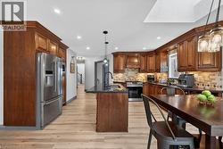 This special Raised Bungalow in Painswick offers more than what meets the eye! The perfect balance between upsizing & downsizing, allowing Buyers to enjoy this home for many years to come. Multi-Gen Living w/ Basement Suite or growing families looking for rental potential. Generous Triple-wide driveway, totals 5.5 spots to comfortably accommodate your Family & Guests. Main Floor Private Sleeping Wing w/2 Bedrooms & 4pc Bath, Laundry Room w/folding station, and Split Level leads up to Primary Bedroom w/4pc Ensuite. Welcoming Floorplan, multiple windows w/abundant natural light thru/o the home. Living Room overlooks formal Dining, walkthrough to gorgeous Chef Style Kitchen w/gas range & SS appliances. Dark Granite counters, showcasing Custom Range Wood Hood, Walnut Shaker style Custom Ext'd Cabinetry w/Crown Moulding. Meal Prep worthy Kitchen Island w/Brkfst Bar plus Eat-in Kitchen w/Skylight & mood pendant lighting. Large Family Room creates cozy movie nights by the fireplace and transforms when hosting Game Day entertainment. Short L-shaped staircase leads down to Garage Access and Lower Lvl Private Multi-Gen Suite. French doors, 8ft ceilings, well-lit w/Pot lights, Modern open concept Kitchen & Living. Kitchen fts. Butcher Block Counters w/White Inset Cabinetry, SS appliances, and Walk-in Pantry. Gas Fireplace w/Walnut & Granite Mantle in Living, Separate Laundry in Flex Mech & Workshop Room. Spacious Private Bedroom w/VERY large W/I closet, additional Dbl door closet, and 3pc Bath. As the seasons change you'll enjoy the oasis yard sitting under Front Porch nestled within Zen Garden. Custom Wrought Iron Side-Gate access to Bkyrd. **READ MORE IN FEATURE SHEET!** Property Updates: Gas Hook up line in Kitchen & Bkyrd for BBQ (2021), High-end chip resistant White Oak Vinyl (2022) most of main floor excluding living & dining room, Eavestrough & Fascia + Recaulked all outdoor window sills (Summer '24), Bkyrd Wooden Deck (Summer '25). *Disclaimer: Summer Photos from 2024. (id:7525)