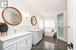 Exceptional Value in Luxury Living. Fully renovated from top to bottom, this elegant 4+2-bedroom, 5-bathroom residence showcases premium finishes and meticulous craftsmanship throughout. Featuring a seamless open-concept layout, two custom kitchens, two separate laundry areas, and extensive built-in storage, this home offers both sophistication and functionality. The designer main kitchen is equipped with a professional-grade gas range, built-in oven, and expansive quartz counters-perfect for elevated everyday living and entertaining. The finished lower level includes a second kitchen and private separate entrance, ideal for multi-generational living or potential rental income. A stylish recreation room with a custom entertainment wall and fireplace creates a warm yet refined atmosphere. Situated on a wide lot with generous spacing between homes, custom sliding gates open to a private backyard retreat with mature trees and a spacious patio-perfect for summer gatherings and peaceful evenings. (id:7525)