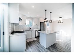 Charming 3 bedroom home w/income potential in desirable Brantford neighbourhood.Boasting laminate flooring throughout the bright and airy main floor, spaciousliving room w/large window & cozy fireplace, perfect for relaxing. Walk into theradiant dining room combined w/kitchen area, ideal for entertaining and casualdining! Kitchen features pot lights for ample lighting and a modern touch. Masterbedroom retreat with walk-out to balcony - enjoy your morning coffee or eveningsunsets. Two additional generous bedrooms w/plenty of natural light. Spaciousbasement with separate entrance - easily convert to inlaw suite or rental apartmentfor extra income! HVAC, roof & washer & dryer all 3 years new. Don't miss out -schedule your private viewing today!