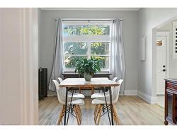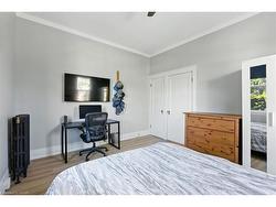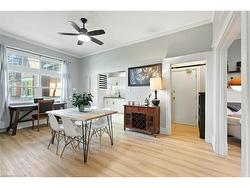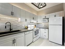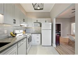 Welcome to 54 Dufferin Avenue, where timeless character meets modern style. This newly updated condo offers a rare opportunity to live in one of Brantford’s most sought-after and historic neighbourhoods, blending the beauty of early 1900s architecture with today’s conveniences. Inside, you’ll find nearly 1,000 square feet of thoughtfully designed living space. High ceilings, oversized windows and classic details like crown moulding and original hardware give the unit a sophisticated feel, while the updates make it completely move-in ready. The kitchen features quartz countertops, subway tile backsplash, valance lighting and plenty of prep space. The bathroom has been fully refreshed with a new vanity and timeless penny tile flooring that ties back to the home’s 1910 heritage. Durable vinyl flooring runs throughout for a clean, modern look. The spacious living room overlooks the beautifully landscaped courtyard — perfect for relaxing after work or hosting friends. Beyond your front door, you’ll love being steps away from parks, walking trails and nearby pickleball courts, as well as downtown shops, restaurants and schools. With easy access to Hwy 403 and public transit, this location makes it simple to balance work, play and everyday convenience. Offering heritage appeal, modern upgrades and a vibrant community setting, this condo is the ideal first step into homeownership in one of Brantford’s most desirable areas. Don’t be TOO LATE*! *REG TM. RSA.