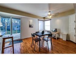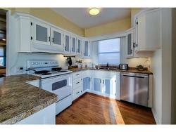 Welcome to this charming 1.5 storey, 2-bedroom detached home located in a quiet, family-friendly neighbourhood. Beautifully maintained and updated over the past eight years, this home features numerous improvements including roof, windows, and furnace, plus a brand new hot water heater. Enjoy a completely carpet-free interior with a warm and inviting layout.The main floor offers a spacious living room filled with natural light, along with a large eat-in kitchen that provides ample cupboard and storage space, a separate dining area, and a convenient walk-out to the back deck-perfect for entertaining. A 4pc bathroom and main-floor laundry add to the home's functionality.Upstairs, you'll find two comfortable bedrooms, ideal for families, guests, or a home office setup.Step outside to a fully fenced backyard featuring a wood deck, patio, and storage shed, offering plenty of space to relax and enjoy the outdoors. The private driveway accommodates parking for two vehicles.Located close to schools, parks, trails, and all major amenities, this home blends comfort, convenience, and modern updates-an excellent opportunity for first-time buyers, downsizers, or anyone looking for a move-in-ready home.