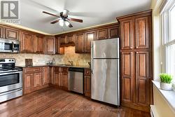 Looking for convenient and affordable upscale 2 bedroom condo within walking distance to downtown, St Lawrence River, waterfront parks and walking paths? This tasteful freshly painted and renovated condo with an open plan will impress. A quiet 11 unit building adds to the appeal along with in unit laundry, intercom, assigned parking, storage locker and outdoor patio and BBQ area. Enjoy the homey feel to this exceptional south facing, end unit. The kitchen with maple cabinetry, quartz countertops, undermount sink, stainless steel appliances opens to the dining/living rooms. Enjoy the stylish 4 piece bath with similar quartz top vanity and maple cabinetry consistent with the kitchen, large soaker tub and ceramic tile floor. The condo fees include your heating as well as outdoor landscaping and snow removal. For investors, this would be a great condo to add to your portfolio. Located just across and east of the Brockville General Hospital it would be attractive as a rental unit for a hospital employee. This is a 2 1/2 storey building with secure front or rear entry with intercom. You will be proud to call this affordable condo home. Property is currently tenanted, 24 hours notice for all showings is required. Photos are from a similar unit. (id:7525)
