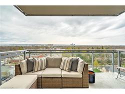LOCATION & STYLE!!! Beautifully appointed 1 Bed, 1 Bath suite offering 632 Sq. Ft. just steps to the waterfront in downtown Burlington’s sought-after boutique Berkeley Condominium. This thoughtfully planned suite has an incredible layout and a large balcony with stunning views to the escarpment. The suite is fitted with a modern kitchen with island, ample storage, modern-neutral hardwood flooring throughout, an open concept living area that flows seamlessly to a north-facing balcony - perfect for taking in stunning sunsets and views. The spacious bedroom has floor to ceiling windows and ample closet space. The bedroom is conveniently located near the 4-piece main bath and laundry. The in-suite laundry boasts front load washer & dryer and additional storage. Building amenities include a state-of-the-art gym, 24-hour concierge, two visitor suites, games room, party room w/ catering kitchen and elegant dining area, common terrace off party room on the 7th floor and roof top patio with BBQ area, fire pits sitting areas and private dining. One parking space and one storage locker included. Enjoy the vibrant lifestyle with easy access to restaurants, cafes, boutiques, Spencer Smith Park, Joseph Brant Hospital, and Mapleview Mall, all right at your doorstep. Easy highway access and minutes to Burlington’s Go-station.