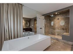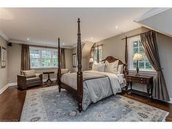 Rare opportunity to own a magical property across from the water with a double wide lot of 120 ft frontage. This South Burlington gem with pool is a character-filled 2 Storey retreat with an oasis yard for any nature lover. Just steps from the lake and minutes to the golf, country club and LaSalle Park. With 3,886 sqft of total living space, it presents a unique opportunity for growing families seeking space, lifestyle, and timeless charm in one of the city’s most coveted locations. Enjoy the serenity of a quiet residential setting while being only minutes from schools, parks, shops, dining, and all major amenities. From the moment you arrive, the curb appeal is undeniable—mature trees, professional landscaping, an interlock walkway, and a wraparound porch set the tone for the warmth inside. The open-concept main floor showcases hardwood throughout, anchored by a chef’s kitchen blending modern finishes with classic design. Featuring a spacious island with breakfast bar and wine storage, granite countertops, custom cabinetry, SS appliances, and a cozy window seat, it flows into the dining area & coffee bar with seamless access to the yard. A formal living room with fireplace and a sunken family room with coffered ceilings, wall-to-wall windows, gas fireplace, and walkout make this a true gathering hub. Upstairs, the expansive primary suite is a private retreat with dual walk-in closets and a spa-like 5pc ensuite complete with soaker tub, dual vanity, & oversized glass shower. Two additional bedrooms each boast their own luxurious full ensuites, while the convenience of upper-level laundry adds everyday ease. The fully finished walkout basement extends the living space with a spacious rec room, games room, and an additional full bath. Outside, the lifestyle continues in a fully fenced backyard with ample green space for kids and pets, interlock patio, built-in BBQ area, shed, and a concrete gunite pool—perfect for summer entertaining.