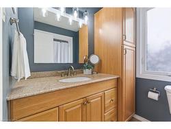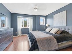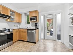 Bright, updated end unit featuring an open-concept main floor with hardwood floors and newer windows. Kitchen offers stainless steel appliances, ample storage, and patio doors to a private patio. Upper level has two bedrooms and a 4-piece bath. Finished lower level includes a family room, 2-piece bath, and large laundry/storage area. Overlooks green space with no neighbors beside for added privacy. Move-in ready!