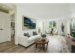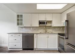 ***NO CONDO FEES FOR SIX MONTHS...Vendor offering maintenance fees paid up front.*** Discover the perfect mix of comfort and convenience in this beautifully maintained 1-bedroom, 1-bath condo in the sought-after Walker’s Square community. The open layout showcases a bright and spacious living area and a smartly designed eat-in kitchen with abundant white cabinetry and stainless-steel appliances. The generously sized primary bedroom pairs perfectly with the convenience of in-suite laundry and 4-piece bathroom. Step onto your private balcony to unwind amidst mature trees and meticulously landscaped grounds—a tranquil park-like backdrop that offers both privacy and natural beauty. The building is smoke-free and impeccably cared for, providing a peaceful, worry-free lifestyle. Enjoy an exclusive underground parking and the added bonus of a locker space conveniently located on the same level as the suite. Exceptional on-site amenities include a party room, fitness centre, car wash station, and a community patio with BBQ area—ideal for entertaining or relaxing with neighbours. All this just steps from shopping, transit and everyday essentials, with quick access to the 403, QEW and GO Station. Affordable, convenient living in a truly desirable location—your new home awaits! Some photos have been virtually staged.