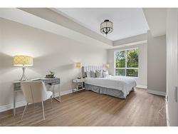 Welcome to this beautifully newly renovated large one-bedroom, two-bathroom condo with serene garden views. This move in ready home provides a serene retreat with modern touches throughout. Parking spot #16 and locker #104. Visitors parking has access to EV chargers. Step inside to find 9 foot ceilings,freshly painted interiors and stylish, updated vinyl flooring that flows seamlessly through the living spaces. The spacious living area is filled with natural light and is overlooking a trees with manicured park and meadow views. This balcony has privacy and tranquility. The kitchen was thoughtfully updated with designer finishes, offering ample cabinetry, under cabinet lighting, quartz countertops, under mount sink with goose neck tap, and LG fridge with ice maker and filtered water, LG glass top range, LG built in microwave and fan, and LG dishwasher. These appliances have just been installed and have never been used. Condo Fee is $639 per month includes FIBE cable and internet, parking, water, heat and A/C via a heat pump you own, building maintenance, and dial up security entrance. Adjacent to the entry door is washer/dryer closet. The generously sized bedroom includes 2 closets, a walk-in and standard. There is room for a desk and chair. The Spa like en-suite bathroom newly installed carara pocelain tile, shower and tub combination. A second 2-piece bathroom adds flexibility for guests or work-from-home living. With its tranquil setting, modern updates, and thoughtful layout, this condo is an ideal choice for those seeking a low-maintenance lifestyle with all the comforts of home. The second floor is most sought after. You can move in immediately and live the good life.