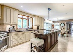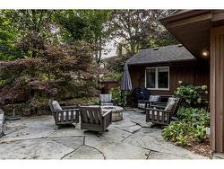Sprawling 3,873 sq.ft. family home on a 150' x 200' estate lot on one of Burlington's most sought-after streets! Located in Tuck School district and steps to the lake and Paletta Park! Custom kitchen with granite, stainless steel appliances (including gas cooktop), island, pot lighting and walk-out. Sunroom with vaulted ceiling, gas fireplace, heated floor and walk-out to a stunning professionally landscaped yard with inground salt water pool (heated). The private and tranquil backyard setting also features an oversized patio, hot tub, pool cabana/storage sheds, gas fire pit, two gas hookups and outdoor lighting. Main level family room with gas fireplace, main level office/den, main level mudroom and laundry and a separate dining room. Primary bedroom with walk-in closet and 4-piece ensuite with heated floor. The fully finished lower level has an additional 1,937 sq.ft. of living space and features a walk-out, rec room with gas fireplace, workshop, gym, 2-piece bathroom and sauna with separate shower. Additional luxury features include hardwood floors, crown moulding, wainscoting, skylights, central vac, covered front porch, outdoor wood burning fireplace and generator that powers the entire home! Detached double garage and driveway with parking for 6 cars. 5 bedrooms and 2 + 2 bathrooms. Luxury Certified.