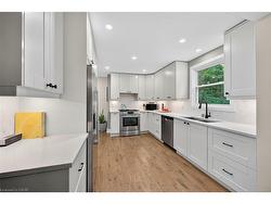 Beautifully finished and updated home on a 60 x 175 foot lot in Aldershot. Living room with large south facing window open to dining room, open to the kitchen. Two bedrooms on the main floor, one with double closets currently used as home office. A 3-piece washroom completes this level. Upstairs has 2 bedrooms, one with walk-in closet. A 4-piece bathroom, book nook & second large walk-in closet complete this space. The basement is unfinished but has been studded & insulated with roughed-in 3-piece washroom. Patio doors off the dining room to large deck & beautiful, private yard. A detached single car garage with radiant heat, electricity & water on concrete slab, totally insulated & drywalled (possible ADU). A second deck is located behind the garage. A potters shed with electricity & water at the back of the property. Cedar hedges & old growth trees create an abundance of privacy. Updates in the last 10 years: roof, kitchen, 2 bathrooms, hardwood floors, exterior doors, interior doors & trim, furnace/AC, front window & 2 upper windows (all other windows 2012), plumbing & most electrical, asphalt driveway, soffits, fascia, eaves, siding, decks. Walk to the Lake, Marina, Burlington Golf & Country Club, schools.