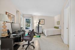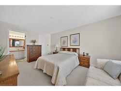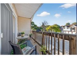 Welcome to this beautifully maintained second-storey, one-level living, town home featuring 2 spacious bedrooms plus 2 full bathrooms. Primary bedroom with walk-in closet and a 4 piece ensuite (tub/shower combo). Second bedroom w/3 piece ensuite (walk-in shower). Numerous windows throughout flood this open concept living area in a cheerful, natural, warm atmosphere. Spacious living room/dining room. Lovely kitchen offers a breakfast bar, pantry, as well as generous extra storage! South facing private balcony (gardener’s delight) is conveniently accessible from dining room plus primary bedroom - extending your living space! Also, enjoy your own personal in suite laundry/utility room! Exclusive-use garage, with an additional parking space and private storage room. Near all amenities! Walk to: waterfront, parks, hospital, Mapleview mall, public transit, schools etc. Easy access to the QEW (Toronto & Niagara bound), 403 and 407. Proudly owned home, meticulously maintained by the same PET FREE & SMOKE FREE owner for over 27 years. This is a special home ready for you! Possession date flexible.