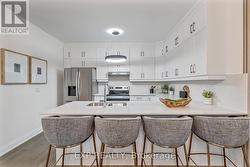 Brand-new executive town home never lived in! This stunning 1,799 sq. ft. home is situated in an exclusive enclave of just nine units, offering privacy and modern luxury. Its sleek West Coast-inspired exterior features a stylish blend of stone, brick, and aluminum faux wood. Enjoy the convenience of a double-car garage plus space for two additional vehicles in the driveway. Inside, 9-foot ceilings and engineered hardwood floors enhance the open-concept main floor, bathed in natural light from large windows and sliding glass doors leading to a private, fenced backyard perfect for entertaining. The designer kitchen is a chefs dream, boasting white shaker-style cabinets with extended uppers, quartz countertops, a stylish backsplash, stainless steel appliances, a large breakfast bar, and a separate pantry. Ideally located just minutes from the QEW, 407, and Burlington GO Station, with shopping, schools, parks, and golf courses nearby. A short drive to Lake Ontario adds to its appeal. Perfect for down sizers, busy executives, or families, this home offers low-maintenance living with a $296.01/month condo fee covering common area upkeep only, including grass cutting and street snow removal. Don't miss this rare opportunity schedule your viewing today! Tarion Warranty! (id:7525)