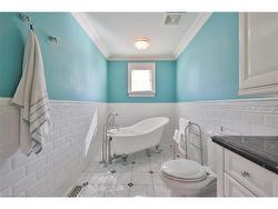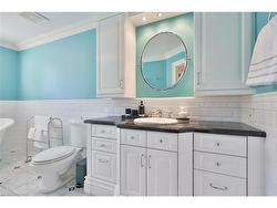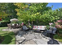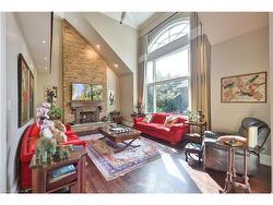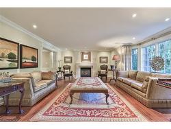 Set on a breathtaking 70’x209’ private lot in Burlington’s prestigious Roseland community, this stately stone and stucco home offers over 5,850 sq ft of finely curated living space across three levels. Showcasing timeless elegance and old-world craftsmanship, this home impresses with custom millwork, plaster crown mouldings, custom built-ins and rich hardwood, limestone and porcelain floors. Step into a grand foyer that leads to elegant formal dining and living rooms with a gas fireplace then discover the heart of the home: a chef’s dream kitchen featuring a sprawling island, top-of-the-line appliances, walk-in pantry, sunlit breakfast area with a walk out to the stunning gardens. Adjoining the kitchen is the great room with a two-storey ceiling, gas fireplace and a wall of windows framing your own backyard paradise. The main level also features a home office, stylish powder room and custom mudroom with access to an oversized double garage with epoxy floors. Upstairs, unwind in your primary retreat with vaulted ceilings, sunlit walk-in closet and luxurious 4-piece spa-inspired ensuite with steam shower. A loft-style library with built-in bookcases overlooks the great room and three more spacious bedrooms include a private guest suite, a shared 4-piece bath and convenient upper-level laundry. The lower level features a home theatre room, hobby room, second laundry, fitness studio with beverage centre and 3-piece bath and storage. Outside, the resort-style backyard is an entertainer’s dream featuring a 20’x40’ saltwater gunite pool (‘19), stucco pool house (‘15) with kitchenette, change room and garden storage, a pergola-covered stone patio (’19) with gas fireplace, dramatic landscape lighting and tranquil stone water feature, surrounded by stunning, lush, mature gardens. Just steps to top schools, parks, downtown and the lake, this distinguished home with its meticulous attention to detail exudes warmth and comfort and will appeal to the most discerning buyer.