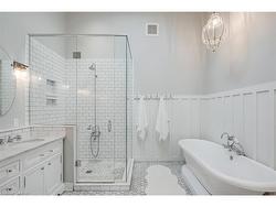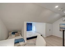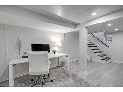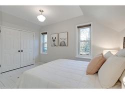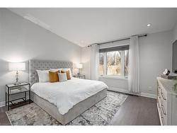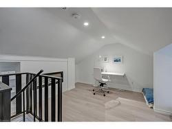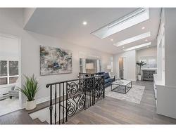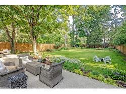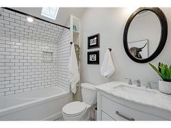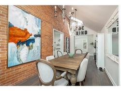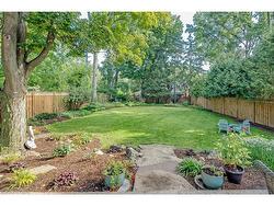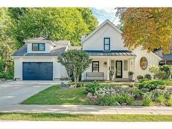This tastefully renovated century farmhouse sits on one of the most sought after streets in downtown Burlington, offering a truly unique opportunity on a premium park like 60 x 181 ft lot adjacent to the waterfront trail and bike path. This 3 bedroom, 3.5 bathroom home features hardwood floors, exposed brick, skylights and pot lighting that add warmth and character throughout. The main level features a beautiful primary bedroom with a spa inspired 5 piece ensuite and a large walk in closet with stacked washer and dryer. The open concept kitchen includes stainless steel appliances, marble counters, tile backsplash and under cabinet lighting. Enjoy the formal dining room with exposed brick, vaulted ceiling and a rough in wet bar, perfect for entertaining. Along the back is an inviting family room with custom built ins, a charming office or reading nook, and a powder room overlooking the expansive fully fenced backyard. The upper level offers 2 bedrooms and a full bathroom, ideal for kids or guests. The finished lower level provides even more flexibility, featuring a comfortable rec room or home office along with a 3 piece bathroom. There is inside access to the spacious 1.5 car garage with a bonus fully finished kids retreat above, complete with electric fireplace and AC. The driveway provides parking for 4 cars. Steps to schools, parks, Lake Ontario, Spencer Smith Park, the YMCA, performing arts centre, library, shops and restaurants, this home offers an unmatched walk-able lifestyle in downtown Burlington.
