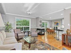 Looking for the sweet spot between “too much house” and “not enough space”? This townhome in Barrington Square might be your Goldilocks moment. Set at the back of the complex for privacy, you’ll find a double garage and driveway… so yes, you can both park inside! Inside, the owner’s meticulous care shows at every turn: hardwood floors, crown moulding, updated kitchen with stainless appliances including induction stove. Walk-out onto the patio perfect for summer dinners under the electric awning while you cook on the gas line BBQ. Upstairs, the primary suite feels like a retreat with vaulted ceilings, walk-in closet and large spa-like ensuite. A second bedroom with its own ensuite access, plus a third bedroom currently used as a den, gives you flexibility without the fuss. Laundry is conveniently upstairs too! The finished basement adds even more living space with a third full bath but doesn’t sacrifice the great storage space either. Lawn and snow care are included so your weekends are free for Central Park strolls or Peach Coffee Co. coffee runs.