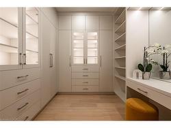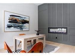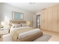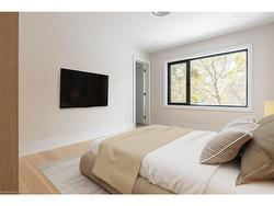 Brand new, never lived-in custom home in Burlington’s desirable Shoreacres community. Set on a tree-lined street and backing onto a park, this residence delivers more than 5,600 square feet of beautifully finished living space and a design defined by craftsmanship and natural light.Enter into the grand foyer with 20' ceiling, 10-inch baseboards, and 7½-inch engineered floors throughout the main level, complemented by in-ceiling, triple pane energy star aluminum windows, in-ceiling speakers and radiant in-floor heating. A front-facing office with 12-foot ceiling, feature wall, and two-sided fireplace offers a refined space to work or study. The open-concept great room centres on a porcelain-clad gas fireplace flanked by custom built-ins, flowing seamlessly into a bright white kitchen featuring JennAir appliances, two sinks, a waterfall quartz island, and matching quartz backsplash. Sliding glass doors open to a covered porch with built-in barbecue overlooking the park—a perfect setting for year-round entertaining.Upstairs, four spacious bedrooms each enjoy their own ensuite. The primary suite includes a walkout terrace, feature wall, and spa-like ensuite with freestanding Mirolin tub, rain and wand shower, and dual vanity.The finished lower level impresses with radiant in-floor heating, a generous walk-up to the backyard, gym, fifth bedroom, steam shower bath, wet bar, theatre room, and recreation area.A rare combination of architectural quality, modern comfort, and family function—all within an exceptional school catchment. Tarion warranty.