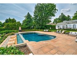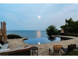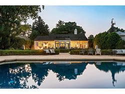 Welcome to 4410 Lakeshore Road, a stunning 1.2-acre lakefront estate in Burlington’s sought-after Shoreacres neighbourhood. This custom-built bungalow offers 5 bedrooms (3 on the main level, 2 on the lower level) and 4 bathrooms, with 4,365 sq. ft. of living space on the main floor alone. Inside, you'll find 12-foot ceilings, detailed crown mouldings, and an elegant yet inviting layout. The expansive great room and chef’s kitchen are perfect for entertaining, while the main-floor primary suite provides stunning lake views. The walk-up lower level featuresa second kitchen, spacious recreation room, and additional bedrooms—ideal for guests or multigenerational living. Step outside to your private oasis: a sparkling inground pool, lush landscaping, and direct access to Lake Ontario, perfect for serene mornings and captivating sunsets. With a detached 2-car garage and parking for 30+, this property offers the ultimate in both luxury and practicality. Located near top-rated schools, parks, and upscale amenities, this exclusive estate combines privacy with convenience in one of Burlington's finest communities.