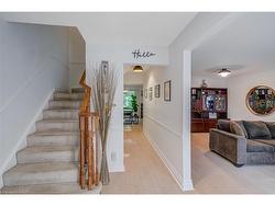 Welcome to your happy place! This beautifully cared-for 3-bedroom townhome (in one of Burlington’s most sought-after complexes!) backs right onto a storybook ravine and babbling creek. Step outside to your massive private deck and soak in the peaceful, forest views — perfect for morning coffee or sunset cocktails. Inside, the main floor is made for entertaining! The updated kitchen sparkles with quartz countertops, sleek modern cabinetry, a GE induction stove, and a Bosch dishwasher. Whip up dinner while chatting with guests in the open-concept dining/living room, then cozy up around the gas fireplace. The family room off the kitchen is a sunlit retreat, with huge windows framing those gorgeous ravine views.Upstairs, the home has been reimagined into 2 spacious bedrooms, each with their own ensuite (but yes — it can be converted back to 3 bedrooms if you prefer!). The primary suite boasts an updated ensuite, a dreamy screened balcony, and plenty of room to unwind. The second bedroom is equally spoiled with a private full bath, and luxury vinyl floors done throughout the 2nd floor (2025).The lower level is another slice of paradise — a bright above-grade bedroom, a rec room with a walk-out to that jaw-dropping deck, plus laundry and storage. Bonus? You get outdoor space on EVERY level — a rare treat!You’ll also enjoy a double-wide driveway, private garage, and a friendly community with an outdoor pool, party room, and snow removal right to your doorstep. Love the outdoors? Kerns Park, golf, and tennis are all within walking distance. Need to commute? You’re minutes from the 403, 407, and QEW. This is more than a home — it’s a lifestyle. Don’t miss your chance to make it yours!