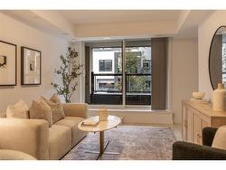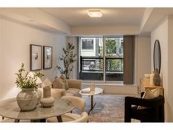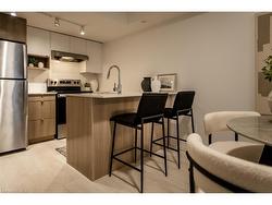 Welcome to Stationwest, where style and convenience meet in Burlington’s Aldershot Village. This bright 2-bedroom main-floor condo offers a thoughtfully designed layout with modern finishes, a private balcony, and one underground parking space. The gourmet kitchen features quartz countertops, stacked tile backsplash, stainless steel appliances, and a centre island with seating. Wide-plank flooring runs throughout the open-concept living and dining areas, creating a warm and contemporary feel. Both bedrooms are fitted with plush carpeting and generous closet space, while the spa-inspired bathroom includes quartz counters, a soaker tub with full-height tile surround, and polished chrome fixtures. Enjoy the convenience of in-suite laundry and the added peace of mind that comes with the durability of concrete construction. Stationwest places you steps from Aldershot GO, major highways, shopping, dining, and the waterfront—making it an exceptional opportunity for commuters, first-time buyers, or investors.NOTE: Seller to buy out all rental equipment — including the boiler, air handler, air conditioning unit, heat recovery ventilator (HRV), and hot water heater — on or before closing, saving the buyer approximately $215 + HST per month!