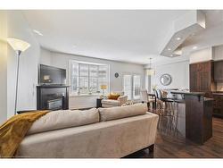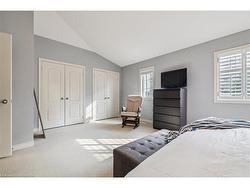 Welcome to Unit 72 at 5080 Fairview Street—an exceptional 2-bedroom, 2-bathroom end-unit freehold townhome with a versatile den/office space, located in Burlington’s desirable Pinedale community. Bright and functional, the open-concept main floor features 9-ft ceilings, hardwood flooring, a cozy gas fireplace, and a welcoming layout. The eat-in kitchen is equipped with stainless steel appliances, peninsula seating, a pantry, and a bay window with built-in bench storage—perfect for casual dining and added functionality. Walk out from the living/dining area to a private, low-maintenance backyard—perfect for relaxing or entertaining. Upstairs, discover 2 generous bedrooms with vaulted ceilings, a 4-piece bath, a large primary suite with his-and-hers closets and den/office space. Enjoy the convenience of an insulated garage, powder room at the entry, and ample storage. With a striking 18-ft ceiling in the foyer, this home is filled with natural light and character. Situated across from the Appleby GO Station and just minutes to the QEW, top-rated schools, shopping, parks, trails, and the lake—this home is ideal for families, commuters, or investors alike. Freehold ownership with a low monthly fee of $179.41 covering snow removal and lawn care. This is easy, low-maintenance living in one of Burlington’s most connected and family-friendly neighbourhoods!