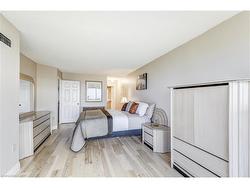 Welcome to this bright and spacious 2-bedroom, 2-bath corner suite offering over1,300 sq. ft. of comfortable living space, perfect for downsizing, with stunningsouth-facing views of Lake Ontario from every window. This beautifully updated condofeatures a split-bedroom layout for added privacy, engineered hardwood flooringthroughout, and 2x2 porcelain tiles in the kitchen, bathroom, and laundry. Enjoyelectronic blinds in the kitchen and second bedroom for added convenience. Thespacious living room opens to a large south-facing balcony through four-panel slidingpatio doors, seamlessly blending indoor and outdoor living and flooding the spacewith natural light.The modern eat-in kitchen is a chef’s dream, showcasing gleaming white push-touchcabinets, pot lights, under-mount cabinet lighting, and all stainless steelappliances, including an induction stove, fridge with ice maker and water dispenser,Miele dishwasher, and a reverse osmosis system. The primary suite offers a cozysitting area, walk-in closet, and 4-piece ensuite. The second bedroom is alsogenerously sized with a semi-ensuite 3-piece bath. A separate laundry room includes aMiele side-by-side washer and ventless dryer with plenty of storage space.Includes two parking spots and a locker, plus access to exceptional buildingamenities: a heated outdoor pool, tennis court, gym, library, social room, workshop,and an indoor car wash bay. Ideally located steps to downtown Burlington, waterfronttrails, beaches, restaurants, shopping, and across from Joseph Brant Hospital.Convenient access to the QEW, 403, 407, and three GO Stations makes commuting abreeze. Make 809-1201 North Shore your Home!!