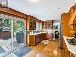 Welcome to 40 Hilltop Drive in the heart of Caledon East!A beautifully updated 4-bedroom, 3-bathroom home set on nearly half an acre backing onto serene green space and trails.The renovated main floor showcases rich hardwood flooring, updated stairs, crown moulding, and pot lights throughout. The chef-inspired kitchen features solid wood cabinetry, quartz countertops, stainless steel appliances, a 5-burner gas stove, wall oven, and custom pot drawers designed for both everyday living and effortless entertaining.The inviting family room with a cozy wood-burning fireplace walks out to your private backyard retreat. Enjoy morning coffee in the sunroom overlooking the heated pool, or host unforgettable evenings on the composite deck under the gazebo. A fire pit, professionally landscaped gardens, interlock stonework, and custom outdoor lighting create a true backyard oasis.Additional highlights include an oversized front porch, main floor laundry, central vacuum, updated bathrooms, and a spa-like ensuite designed for relaxation. The unspoiled basement offers incredible potential to finish to your taste ideal for additional living space, a recreation area, or a future in-law suite with separate entrance possibilities.Located on a quiet, family-friendly street just steps to parks, schools, and Caledon East's trail system. Minutes to the Caledon East Community Complex with pool, gymnasium, and arenas, offering year-round recreation. A rare opportunity to enjoy space, privacy, versatility, and lifestyle all within one of Caledon East's most desirable communities. (id:7525)