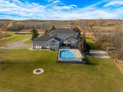 A STORY OF SPACE, STILLNESS & HOME. There is a certain kind of quiet you only find in the countryside. At 1295 Sheffield Road, the quiet greets you the moment you arrive. The long, winding driveway, the wide open sky, the stretching acres of green, it all feels like an exhale. 1295 Sheffield Road sits confidently on over an acre of land, surrounded by trees and fields that change with the seasons. In the summer, the horizon glows golden. In the winter, snow blankets the property in a calm hush. Every inch of this place feels peaceful. Step inside, and the feeling of calm continues. The front office/bedroom sits just off the entry. Beyond it, the living room curves gently, wrapped in windows that frame the landscape like artwork. The dining room offers its own sense of occasion, a place to share meals, birthdays, holidays, and laughter. And then, the kitchen. Newly redesigned in 2023, it is striking — black cabinetry against fresh white countertops, a modern yet timeless contrast. It feels like the heart of the home. Just beyond, the family room opens wide, inviting conversation, cozy movie nights, or simply a moment to sit and breathe. Upstairs, the primary bedroom is its own sanctuary. 2 walk-in closets keep life organized, and the ensuite feels like a quiet escape at the end of the day. The other bedrooms are just as comforting. Downstairs, the walkout basement awaits your finishing touches. With heated floors underfoot and doors that open both to the yard and to the garage, it is ready to become whatever life calls for next — a games room, gym, a guest suite, or something entirely new. Then, step outside. The wraparound deck follows the house the way a horizon follows the sky. The heated on-ground pool shimmers below, a private retreat tucked into the land. A gazebo waits for late-night conversations. The hot tub waits for stars. Close enough to the city to be convenient. Far enough to feel beautifully away. Photos are virtually staged.