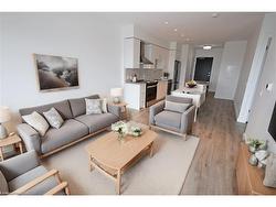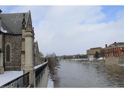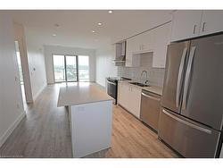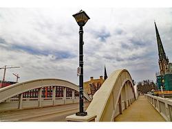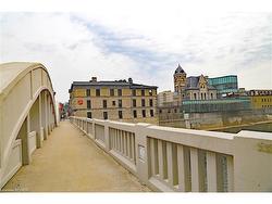 Fed up with the snow and ready to call the Gaslight District home? This 2-bedroom, 2-bath condo is move-in ready and priced below recent sales. You’ll love the peaceful views and walking trails of the nearby Grand River. The open-concept kitchen comes with five sleek Whirlpool appliances and a handy island that’s perfect for casual meals or entertaining. The open concept and 9' ceilings give this unit a bright and airy feel. Step out onto the glass balcony — accessible from both the living room and the primary bedroom — and soak in those amazing views. You’ll also have underground parking, a storage locker and the ability to lock the door and travel at a moment's notice. The Gaslight Condos offer incredible amenities too: a fitness centre, games room, library/study, and a gorgeous outdoor terrace with pergolas, fire pits, and BBQs overlooking Gaslight Square. All this and an easy walk to the great shops in Downtown Galt!