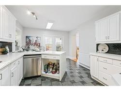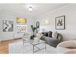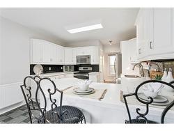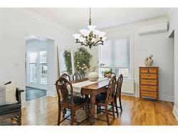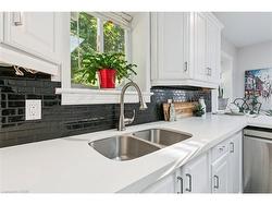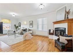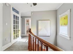 This beautifully maintained 2000 sq. ft. double-brick home, built circa 1900's, blends historic character with modern updates. Features include hardwood floors, crown mouldings, high ceilings, stained-glass windows, and the original staircase railings. The spacious kitchen offers new appliances and a walkout to the wrap-around deck. With 3 bedrooms and 1.5 bathrooms, a versatile loft with skylights, a gas fireplace, and approximately 500 sq. ft. of basement storage, this home is both functional and charming. 200 amp electrical service, plumbing, and roof shingles (approx. 6 years old) have all been updated. Enjoy a private backyard backing onto a wooded area and sunset views from the elevated front patio. Walking distance to downtown Hespeler, schools, parks, and trails, and only five minutes to Hwy 401.
