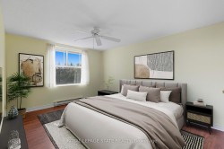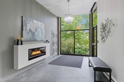 Welcome to The Highlands by the Park; 20 Berkley Road. Nestled atop a hill at the end of a quiet cul-de-sac in historic West Galt, this prestigious condominium offers tranquility, privacy, and sweeping views of nature and the city skyline. Overlooking a majestic woodlot, Victoria Park, and beyond, this building is one of Cambridge's hidden gems. This spacious 2,418 square foot, carpet-free unit offers a rare combination of size, layout, and natural light. With 3 generously sized bedrooms, 2 full bathrooms, and a thoughtfully designed floor plan, it's ideal for those seeking a blend of comfort and functionality. Step into an impressive foyer with mirrored walls and a large closet before entering the bright eat-in kitchen, complete with ceramic tile, crisp white cabinetry, built-in range top, track lighting and a cozy breakfast nook that looks out over lush greenery. The kitchen opens into a formal dining room with laminate flooring and elegant wall sconces; perfect for entertaining. The adjacent oversized living room features a wood-burning fireplace (sold in as-is condition) and leads to a bright all-season solarium with floor-to-ceiling windows, perfect as a den, office, or creative space. Down the hallway, you'll find three spacious bedrooms, including a large primary suite with two large windows, an expansive walk-in closet, and a 5-piece ensuite. A second 4-piece guest bath serves the remaining bedrooms. The in-suite laundry closet is conveniently tucked away off the main hallway. Building amenities include a rooftop terrace with panoramic views, ample seating, and barbecue, a party room with full kitchen and lounge area, meeting room, exercise room, and beautifully maintained common spaces. This unit includes one underground parking spot with a tandem storage locker. Don't miss this rare opportunity to live in a peaceful, elevated community surrounded by nature, just minutes from the charm and culture of West Galt.