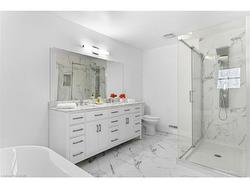 With almost 4ooo sqft of usable space, you will have plenty of room for the entire family. This home has had an amazing transformation that was completed in 2022 with every detail on point. As soon as you enter the front door you will quickly be impressed. On the main floor there is a powder room, laundry with entry to the garage, a door to the side yard and an office space which could also be used as a guest bedroom. Now the show stopper, the rest of the main floor is open concept! There are no walls between the family room, kitchen and dinning room. The kitchen was custom designed by Barzotti. Beautifully crafted and includes a giant 10-foot island that easily sits 6 people, quartz counter tops, stainless-steel appliances. Upstairs: Massive primary bedroom with ensuite (soaker tub, glass shower, double sinks), a large walk-in closet, 3 more large bedrooms and a full washroom. Downstairs: two bonus rooms, rec room, kitchenette and full washroom, large storage room and cold room. Backyard: gorgeous stone patio approximately 560 sqft (2023), and a shed. Private yard with no back neighbors, a gate at the back fence to take walks through the forest which leads to Santa Maria Park. Great location. Close to schools, shopping, parks, river trails, and quick access to 401 or 403.