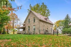 There is nothing more charming - or more romantic -than life in a country century stone home. It embodies a simpler era and a more peaceful way of living. This magnificent circa-1867 home is perfectly positioned a good distance from the road & nestled on a spectacular 1.5-acre lot. Its the perfect blend of preserved history and modern comfort, offering all the updates and conveniences of today, while maintaining its timeless character. Picture yourself on the wrap around verandah, sipping your morning coffee or unwinding in the evening as you take in the tranquil surroundings. Step inside the grand front foyer, where your eyes are immediately drawn to the impressive solid staircase, soaring 10-foot ceilings, and deep window sills - all hallmarks of classic craftsmanship.The expansive dining room flows seamlessly into a cozy family room, anchored by a charming wood stove, that is sure to become a gathering spot for family and friends. The large, eat-in kitchen is a chef's dream, featuring abundant cabinetry and generous counter space. Also on this level, you will find a convenient mudroom, laundry area, and a 3-piece bath. A secondary staircase from the kitchen leads to the upper level, where you'll locate four spacious bedrooms with beautifully refinished original pine flooring. The lower level offers a pleasant surprise - an additional bedroom and TV area, plus ample storage and utility space in an unfinished portion. Proceed now to the outside... to your private backyard oasis: a gorgeous patio area , with a refreshing in-ground pool ...the perfect setting for summer entertaining or quiet relaxation.The property also includes a double car garage, a tool shed, and a dedicated dog run, offering both functionality and convenience for modern country living.This remarkable home truly captures the spirit of country living, combining elegance, comfort, and the timeless beauty of a bygone era. (id:7525)