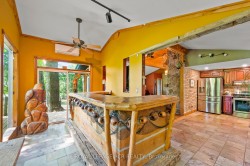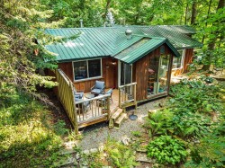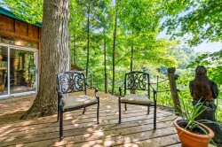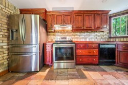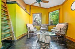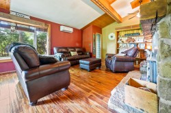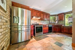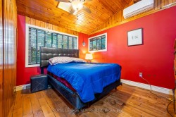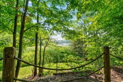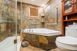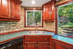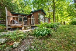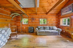 Tucked away in the coveted Roman Lake community, this rustic yet refined bungalow offers the ultimate private escape. Whether you're searching for a peaceful weekend hideaway or a place to call home year-round, it's a setting that soothes the soul. Wake to serene lake vistas framed by mature trees, where deer, birds, and other wildlife create a living backdrop. Inside, you're welcomed with soaring vaulted ceilings, an updated kitchen, and an inviting blend of hardwood and slate underfoot. A built-in bar area takes full advantage of sweeping views, making every coffee or cocktail feel special. In the spa-inspired bathroom, heated floors add a touch of indulgence, while a corner jacuzzi-style tub and sleek glass walk-in shower promise relaxation at the end of the day or a refreshing start in the morning. Keep cozy with two fireplaces or rely on the efficiency of a forced air furnace when the seasons shift. Multiple windows let in generous natural light, accenting the warm wood finishes throughout. Step outside and the magic continues. Expansive decks, a private patio, and a charming detached log cabin with hydro provide endless opportunities for hosting, lounging, or simply enjoying the calm. One of the practical perks of the home is the hookup for a backup generator. Situated just minutes from the village of Hillsburgh, which offers small-town charm with welcoming shops, local eateries, and a friendly, walkable main street. For commuters, the location is just a short drive to Erin, Orangeville, and Guelph, with easy access to Georgetown, Milton, and Brampton, making it a comfortable commute to the GTA.