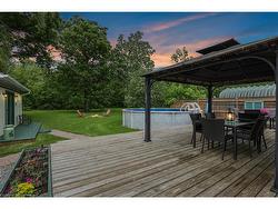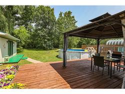 COUNTRY CHARM JUST MINUTES TO TOWN ... Tucked away on a quiet street in Fort Erie, 1954 Grayson Avenue offers peaceful country-style living on a lush OVERSIZED 80’ x 223.8’ L-SHAPED lot backing onto the Stevensville Conservation Area - with no rear neighbours and mature trees for ultimate privacy. This spacious, 1680 sq ft bungalow is full of character, and features 3 bedrooms and 2 bathrooms. Step onto the charming, covered front porch, then proceed inside to find gleaming hardwood floors, crown moulding, and an impressive corner gas fireplace anchoring the OPEN CONCEPT living/dining space. The bright kitchen offers abundant cabinetry, a gas stove, and a server window for effortless entertaining. Step through patio doors to your private backyard oasis, complete with a deck, above-ground POOL, 10’ x 12’ GAZEBO, gas BBQ hookup, storage/garden shed, and a detached garage/WORKSHOP. Bonus: a fully insulated 400 sq ft mancave with heat and A/C - perfect for a studio, games room, or year-round hangout! This home is practical, too - featuring a BRAND-NEW septic system, plenty of closets (all with lighting), 4-pc main bath, plus a separate laundry room with 2-pc bath. Located close to schools, parks, golf courses, campgrounds, the Fort Erie Leisureplex, and only minutes to Safari Niagara, Crystal Beach, or the Peace Bridge to the U.S. CLICK on MULTIMEDIA for virtual tour, drone photos, floor plans & more.