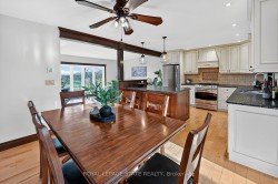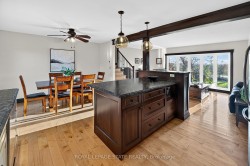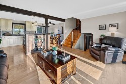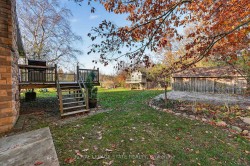 OUTSTANDING LOCATION MINUTES TO BEAMER FALLS - This beautifully maintained 4-level side split sits on a stunning 0.49 acre lot surrounded by an orchard in front, open field to the side, and mature forest behind. Enjoy walking distance to Beamer Conservation Area and just a 20-minute walk to downtown Grimsby. Step inside to a bright, inviting main-floor flex space featuring a cozy gas fireplace and serene backyard views-perfect for a den or home office. Upstairs, the open-concept living and dining area offers Maple hardwood flooring and a charming bay window overlooking the orchard. The updated kitchen includes a large island with leathered granite counters, custom cabinetry, stainless steel appliances, and patio doors leading to an oversized deck ideal for entertaining. The upper level features original hardwood floors, a spacious primary bedroom with ensuite privilege to the 4-piece bath, plus two additional bedrooms-all offering beautiful views. The lower level is warm and welcoming with two large windows, a comfortable rec room, and a combined laundry/utility room. Outside, enjoy exceptional outdoor features including a greenhouse for gardeners, a children's playhouse, and a 15 x 25 ft workshop. Additional highlights include an attached single-car garage, parking for multiple vehicles, a large vegetable garden, and mature landscaping. This is a truly special property in one of Grimsby's most picturesque settings close to Bruce Trail and QEW.