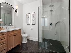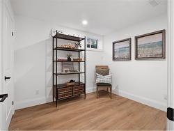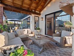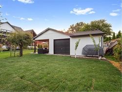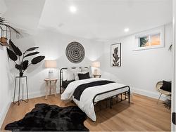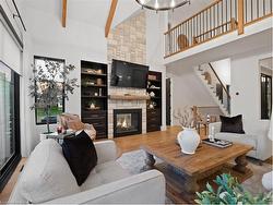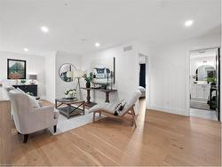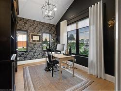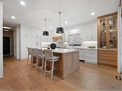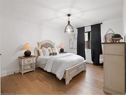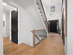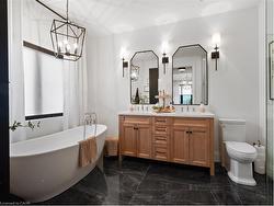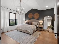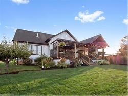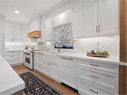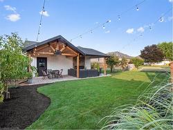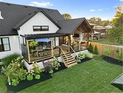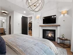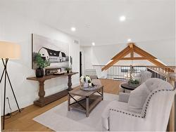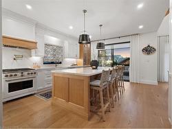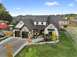 Welcome to your dream home — a custom-built bungaloft that blends timeless craftsmanship with modern luxury. Nestled beneath the Niagara Escarpment, this home makes a lasting impression with its landscaped lot, post-and-beam porch, and striking stone accents. Inside, 9-foot ceilings and wide-plank hardwood floors set the tone for open, elegant living.The great room boasts 12-foot vaulted ceilings with Douglas fir beams, a two-sided glass fireplace, and a 16-foot sliding wall opening to a backyard oasis. The gourmet kitchen features solid maple cabinetry, quartz counters, paneled appliances, a farmhouse sink, pot filler, and a large island perfect for gathering.The primary suite offers a cathedral ceiling and a spa-like ensuite with heated porcelain floors, double vanities, and a freestanding tub. Upstairs, a bright loft overlooks the great room, while the finished lower level includes two bedrooms and a bath.Outdoors, enjoy a covered porch with fireplace, manicured landscaping, and a separate garage with workshop. Built to the highest standards—with Wi-Fi blinds, tankless water heater, and solid-core doors—this five-bedroom, four-bath home pairs modern comfort with timeless design.A rare opportunity to own a home where every detail reflects beauty, quality, and lasting value.
