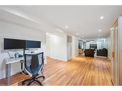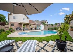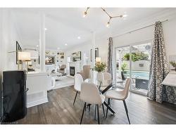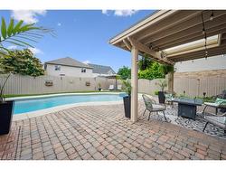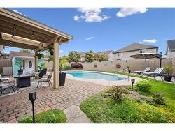 Stylishly Updated for Modern Living! Located in Guelphs sought-after south end, this beautifully upgraded home offers over 3,000 sqft of finished living space, including 3 bedrooms and 4 bathrooms perfect for todays busy family. With undeniable curb appeal, the home welcomes you with a charming covered porch and double-door entry into a bright, inviting foyer. The first floor boasts soaring 9-foot ceilings and hardwood floors, which continue throughout the second level. The formal dining room sets the tone for elegant entertaining, featuring full-height paneling, crown molding, and a striking contemporary chandelier.The heart of the home is the showstopping eat-in kitchen, complete with two-tone cabinetry, quartz countertops, stainless steel appliances, and a sunny breakfast area with walkout to the backyard. A cozy family room anchored by a gas fireplace and custom built-in bookshelves is the perfect space to unwind. Upstairs, rich hardwood flooring continues throughout, leading to the luxurious primary suite with a bay window, walk-in closet, and a spa-like 5-piece ensuite featuring a jetted Jacuzzi tub.The fully finished basement offers exceptional flexibility ideal for a home office, gym, playroom, or guest suite, complete with a full bathroom. Outside, the fully fenced yard is your private retreat, featuring an in-ground pool, mature landscaping, covered patio area, and an insulated pool house with hydro. Recent updates include a new pool liner, cover, heater, and equipment, as well as updated windows, furnace, AC, staircase, flooring, kitchen cabinetry, and much more!Located minutes from schools, parks, amenities, and the 401 this home truly has it all.
